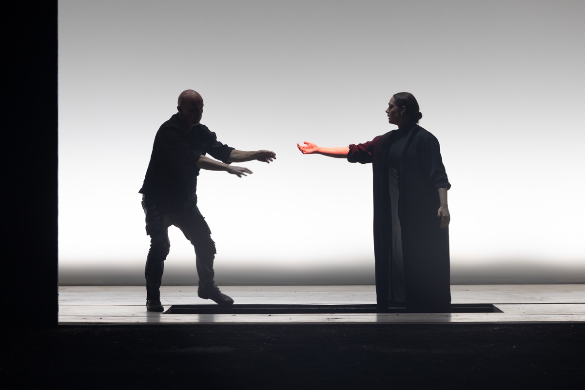 Tutte belle intuizioni ma slegate, che non trovano, ci sembra, una chiara e coerente linea visuale e concettuale nella struttura complessiva dell’allestimento. Da rilevare anche, nell’insieme, una certa freddezza recitativa e monocorde che non illumina del tutto la verità o l’irriducibile enigma dei personaggi e delle loro azioni. Nei ruoli principali di Macbeth e Lady Macbeth Roberto Latini e Lucrezia Guidone, e con loro Gennaro Apicella, Riccardo Ciccarelli, Sergio Del Prete, Antonio Elia Marcello Manzella, Nicola Pannelli, Olga Rossi, Michele Schiano di Cola, Paola Senatore.