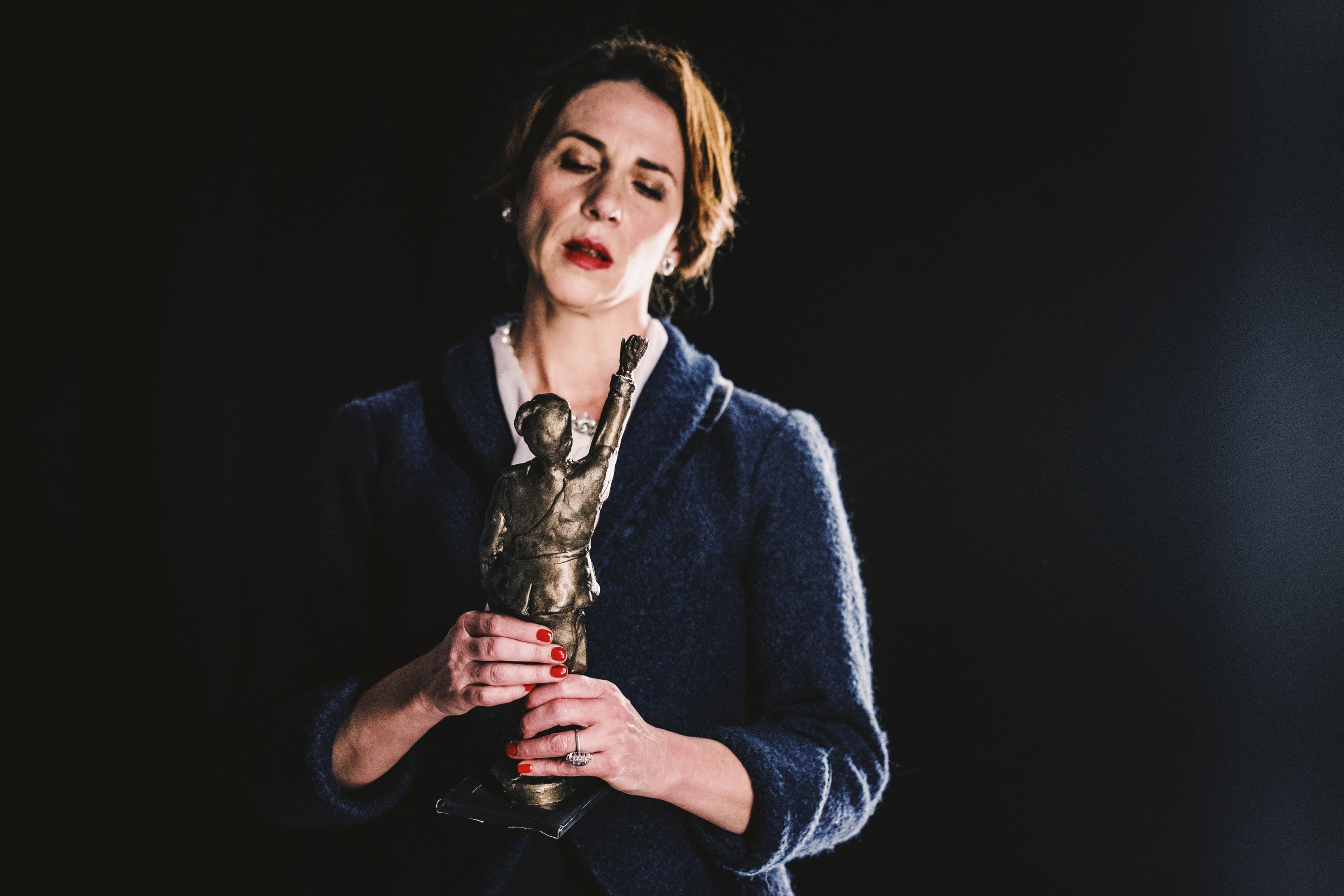 Al Teatro Franco Parenti di Milano ha debuttato Sarfatti, l’opera nata da un’idea di Massimo Mattioli e Claudia Coli con la regia di Andrea Chiodi. Un ritratto intimo e complesso che intreccia la grande storia italiana con il contributo della visione artistica della curatrice e, soprattutto, con i suoi dilemmi personali. Coli, in un elegante completo blu in tinta con la omonima sala che ospita la rappresentazione, propone il suo monologo inserita in un cubo di luce, pensato da Orlando Cainelli a incorniciare una scena minimalista, in cui campeggiano solo una sedia e un tavolo con una teca che contiene una statuetta del Duce, disegnata dallo scenografo Guido Buganza.
