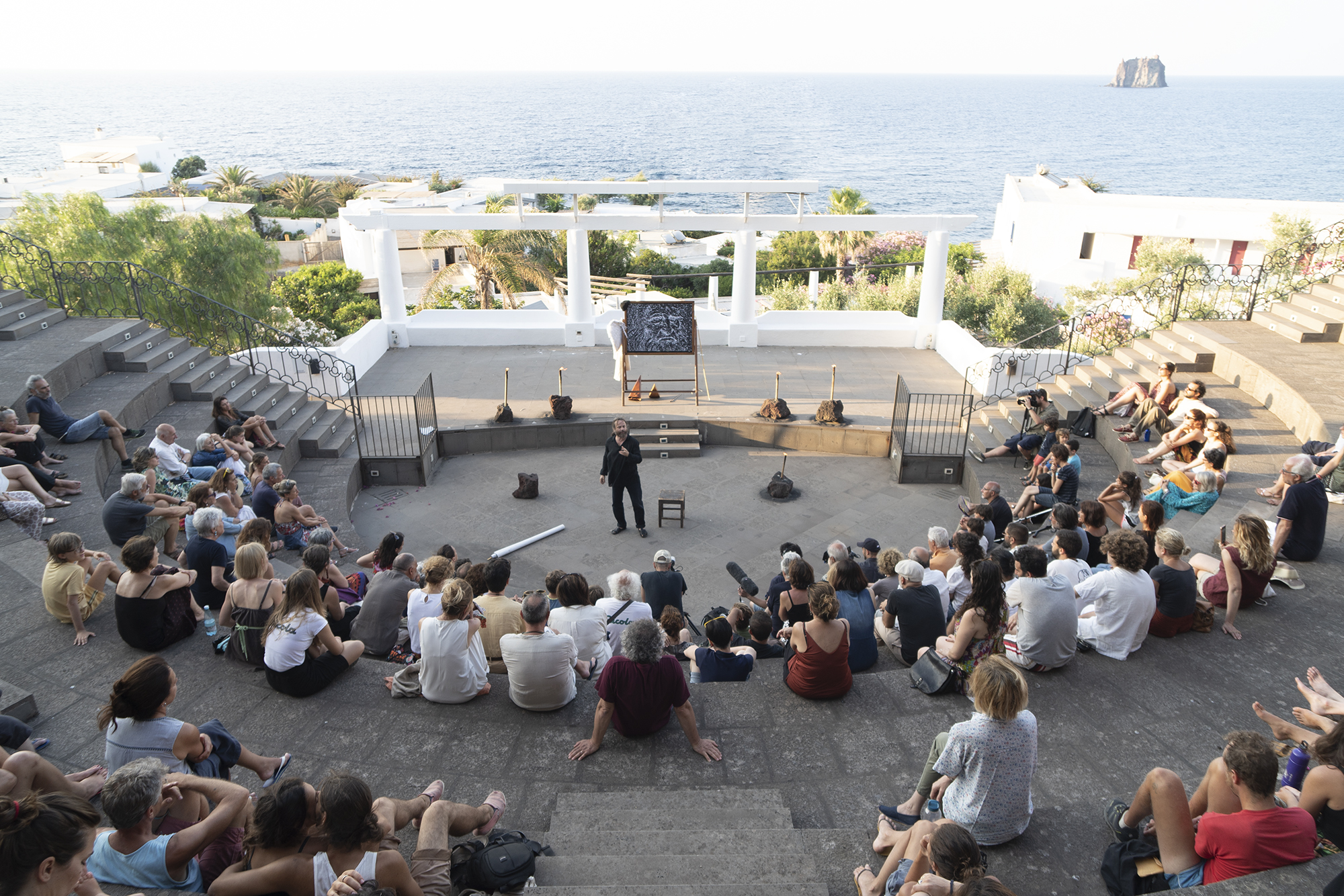 «La Festa di Teatro EcoLogico è più una festa che un festival, perché non è una vetrina di spettacoli ma è un laboratorio, un esperimento in cui artisti, scienziati, scrittori sono invitati a passare sull’isola di Stromboli almeno cinque giorni per immergersi e partecipare. Un momento importante sono gli incontri la mattina al bar per chiacchierare di quello che è avvenuto il giorno prima, come una specie di piccolo simposio nel senso più antico del termine, un raduno dove si beve, si mangia e si discute attorno a un argomento.
