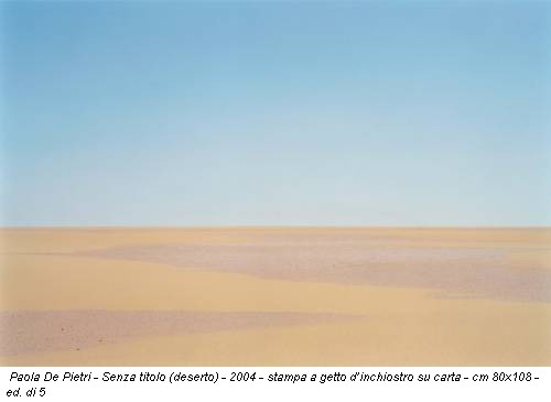 Anche Paola De Pietri si concentra sull’infinito: a questo scopo abbassa l’orizzonte e filtra il paesaggio fino a renderlo inessenziale, come se l’immagine fosse stata elaborata con acidi capaci di togliere consistenza alla materia e renderla senza dimensione, senza spessore, superficie piatta in cui anche il colore appare dissolto, sbiadito.