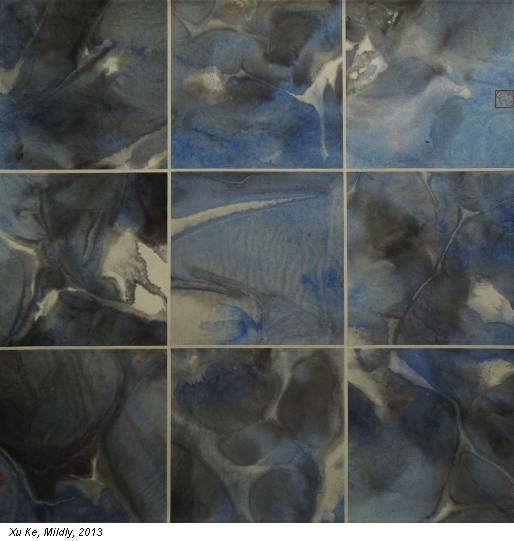 La veneta Cristina Gori da anni conduce una ricerca multimediale intorno alla dialettica tra natura ed artificio. Per le sue opere si avvale di materie prime artificiali, che possano però imitare o ibridare la forma naturale, alludendo anche alla controversa (e sempre attuale) tematica delle mutazioni genetiche. Ne è chiara espressione la creazione in feltro verde acido che invade gli austeri lastroni marmorei del salone al piano terra delle Scuola Grande: sorta di entità organica tra vegetale e neuronale. Lo shangahinese Xu Ke – autodidatta durante i tumulti della rivoluzione culturale cinese, in seguito perfezionatosi alla Shanghai Art Academy – ha fatto propria la secolare tradizione della pittura calligrafica di paesaggio shuǐmò (水墨), rielaborandola in chiave contemporanea e astratta, attraverso l’invenzione di un proprio vocabolario cifrato.