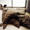 Claudia Losi (1971) nel 1998 ha incontrato le donne di un campo profughi di Belgrado, nel 1998; è ritornata con l’immagine di un popolo che sta segregato e imprigionato come le carpe di un acquario al mercato. La sua installazione presenta una grande foto di quell’immagine metaforica dell’acquario, sullo sfondo di un mucchio di strani cuscini ammonticchiati, cuciti con le coperte militari in forma di pesci stilizzati.