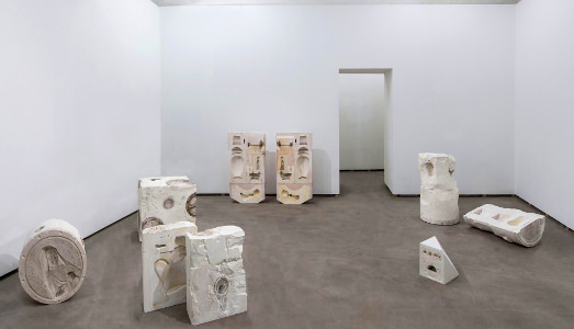 Con un occhio di riguardo all’antica tradizione della lavorazione dell’argilla per la Repubblica veneziana da parte di quell’antica comunità che, ai primi del Seicento, abitava l’area costeggiante le rive del fiume Brenta – per gli antichi Romani Medoacus – il corpus dei Manufatti Fossili riunisce su di sé due sfaccettature del lavoro di Ardini: da una parte quella della manualità, del saper fare quindi della lavorazione del materiale, che oggi viene sempre più meno nel lavoro di molti altri artisti; dall’altra, il desiderio di fare di questi oggetti un tramite tra passato e futuro. Brocche, vasi, piatti, persino specchi: l’artista ne fa degli stampi, che poi seziona mostrandone le tracce interne. Nel mostrarsi dall’interno di quei blocchi di gesso, gli oggetti si tramutano in oggetti archeologici, in fossili per l’appunto, testimonianza di una presenza del passato e congelamento del passato stesso. Trasportati dalle acque del fiume – non a caso lo Stige dantesco era uno dei cinque fiumi dell’Inferno – questi nuovi reperti sopravvivono alla morte temporale.