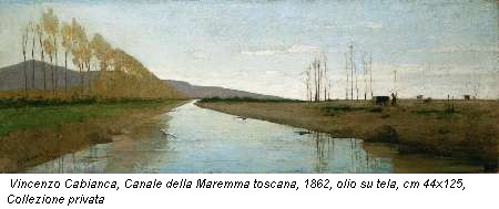 Cabianca giunge a Firenze nel 1853 e frequenta, inizialmente con Signorini e Borrani, il patriottico Caffè Michelangelo, discutendo con loro di arte e di politica. Firenze, che sogna per un attimo di essere capitale d’Italia, fa da sfondo alle vicende di questo sparuto gruppo di artisti, che stanno costruendo inavvertitamente le basi per una straordinaria revisione della pittura italiana. Recalcitranti ai polverosi dettami accademici, annoiati dal classicismo stantìo, vengono definiti spregiativamente nel 1862 dalla Gazzetta del Popolo ‘macchiaioli’. La pittura di “macchia”, anche un po’ figlia di quel ton gris parigino d’importazione, diverrà motivo di partenza ed appartenenza stilistica di questo grappolo di artisti. Figura fondamentale per il loro incipit fu Diego Martelli, un onnipresente tutor teorico che seppe avvicinare gli artisti alla comprensione dell’Impressionismo francese.