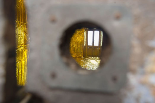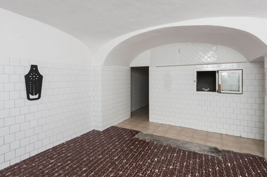 Anche il bagno è antro espositivo con il lavoro di Leonardo Petrucci all’interno della vasca, completamente riempita di inchiostro nero di seppia e in continua ebollizione come a segnalare un processo alchemico in fieri. I paesaggi incorniciati dalle finestre sembrano quadri di luoghi incantati e diventano pretesto pittorico per Matteo Fato nel tentativo di ridipingere lo stesso scorcio visto da una finestra dell’ex-stanza del canonico nell’opera Il Piano del Cavaliere, ossia, stare a Cavaliere.