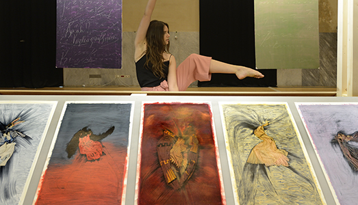 “Un nugolo di mosche che divorano i resti della Roma di oggi”. Così Alfredo Pirri racconta la sua ultima mostra, che unisce la tragedia greca con le parole di Jean Paul Sartre, autore dell’opera teatrale Le mosche (1943) basata sulla riscrittura delle Coefore di Eschilo in chiave esistenzialista, dove la libertà viene definita come “il più assurdo e inesorabile degli impegni” che piomba su Oreste, esiliato in quanto assassino di Egisto e Clitennestra per istigazione di Elettra, tormentata dalle mosche, le moderne Erinni. “Le Erinni (secondo Jean Paul Sartre)” è stata organizzata alla Pelanda nell’ambito del settantesimo anniversario dell’Accademia Nazionale di Danza, che ha chiesto a Pirri il progetto di una mostra che coinvolgesse i costumi storici dell’istituzione.