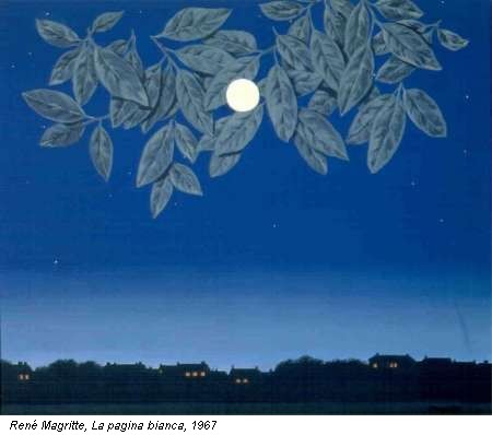 Di sala in sala la tavolozza di Magritte si schiarisce, compaiono cieli azzurri e nuvole bianche, incantevoli e ingannevoli notturni (il bellissimo L’impero delle luci e l’altrettanto suggestivoLa pagina bianca). Non ci sono significative variazioni di stile, fatta eccezione per un breve periodo nel secondo dopoguerra, nel quale un Magritte irriconoscibile sperimenta un mix di linguaggi diversi e di tonalità accese; pennellate lunghe e articolate (La quinta stagione), virgole di colore che si dispongono in cerchi concentrici, figure tracciate in punta di pennello (La vita degli insetti). E’ la parte più debole della sua opera –e della mostra- che presto viene abbandonata per un ritorno all’ordine-Magritte.