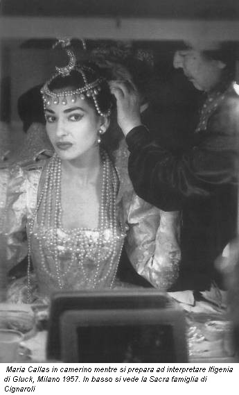Tra i numerosi pezzi pregevoli presenti in mostra si segnalano in particolare la Sacra Familia di Giambettino Cignaroli (1718-1770), un piccolo olio su tavola che le donò il marito, Giovanni Battista Meneghini, e che per lei divenne un vero e proprio talismano senza il quale si rifiutava di cantare; i costumi di scena per Turandot e Medea; i bozzetti per costumi e scene dell’Armida firmati Alberto Savinio.