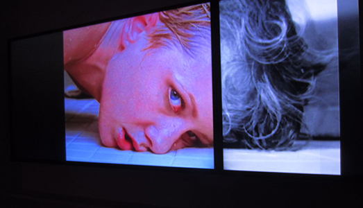 L’opera, imprevedibilmente affascinate all’udito, lo è ancor di più alla vista. Su un doppio schermo scorrono delle immagini, rimbalzando da un lato all’altro con moto perpetuo. Le immagini – frame tratti da Psyco e dal suo remake del 1998 – rinviano ad epoche differenti, inanellandosi in un continuo ritorno, tra passato e presente, tra realtà e metafisica. Uno scorrere alternato e ininterrotto, accentuato dalla contrapposizione tra il bianco-nero dell’originale e il colore del remake, in un confronto tra due epoche consequenziali eppure assai distanti di interpretare la visione. Si legge l’ossessione del ritorno, il conturbante fascino dell’eterno riproporsi, in un ritmo fuori dal tempo, oltre il tempo, potenzialmente senza fine.