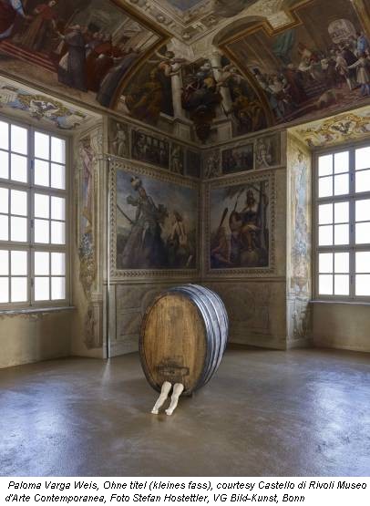 «Il binomio contenitore/contenuto è molto forte nel suo lavoro, come si vede anche nell’opera Ohne Titel (Kleines Fass), 2012 che ha come oggetto una botte per il vino. Anche in Bois Dormant – Cabinet 4, 2015, che è innanzitutto un contenitore – di sogni, potremmo aggiungere noi, visto che Paloma lo intitola legno dormiente – ci sono anche alcuni porta ampolle, dei trespolini di ferro, lasciati vuoti. Tale binomio di pieno e vuoto, ha senz’altro a che fare con la dualità maschile e femminile, ma esprime inoltre un rapporto di contrari ambivalente, analogo al perturbante, in quanto i due opposti non sono fissati nella loro forma maschile fallico e femminile/cavo; si trasformano l’uno nell’altro, cambiano sembianze, anche attraverso l’uso della mascherata».