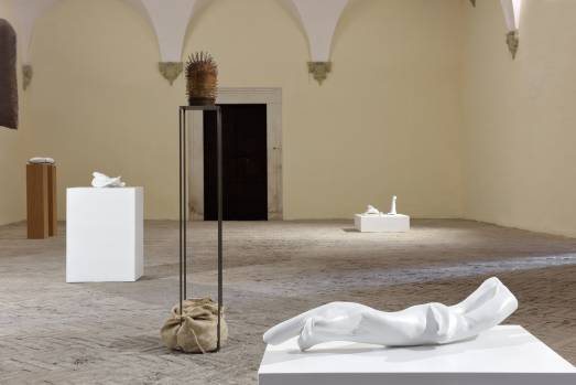 Candidi frammenti fanno eco al bianco della volta antica; il sughero dal colore caldo e terreo ricorda il cromatismo delle pareti e del pavimento. A colpire, sin da subito, è l’armonia che caratterizza l’allestimento di questo stimolante spazio nei sotterranei del Palazzo Ducale di Urbino; nella sala si è appena inaugurata la nuova personale di Marco Strappato.