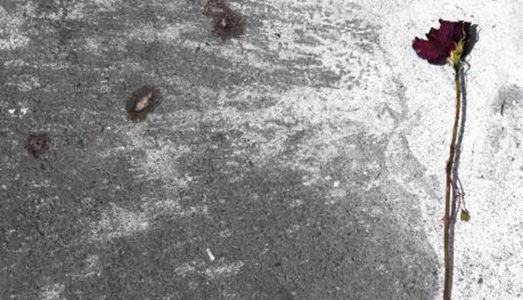 Nel ciclo che dà il titolo alla mostra, iniziato dalla Mitolo nel 2010, riecheggia la tradizione della Vanitas, in cui il fiore appassito, emblema dei piaceri effimeri, seppur carico di connotazioni negative conserva una posizione dignitosa (su un tavolo o in un bel vaso). I fiori fotografati da Ezia Mitolo sono invece, oltre che appassiti, calpestati, ammucchiati come rifiuti o spazzati via dal vento. Questa bellezza violentata e deturpata giace agli angoli delle strade, ai bordi dei marciapiedi, nelle fontane e nelle pozzanghere. Solo l’artista, nella sua flânerie, si cura di registrarne la presenza.