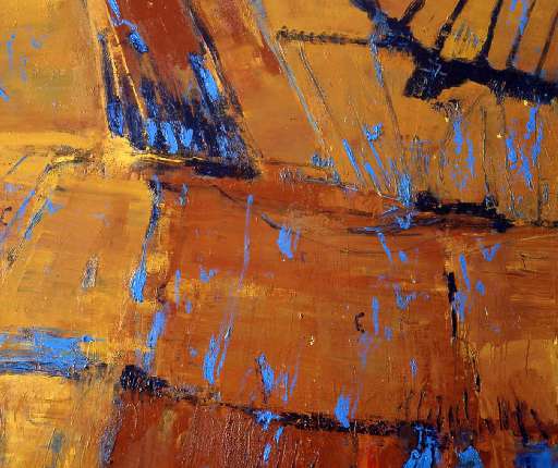 Dalla Veduta del Lochness, opera che introduce la mostra, alle istantanee di Belforte, fino alle versioni di Gstaad, l’immagine sconfina da un dipinto all’altro dando l’impressione di catturare un paesaggio irreale, in cui l’accostamento dei colori rimanda ad una dimensione antinaturalista. Blu, giallo, arancio, si rincorrono sulla tela per trasmettere emozioni, sensazioni d’impatto, impressioni veloci che costruiscono i piani prospettici dell’immagine attraverso semplici masse. Sono colori caldi che disegnano i grandi volumi e lasciano le rifiniture alle tonalità più fredde dei neri e delle tinte marroni. Quello che interessa al pittore non sono i dettagli, ma le vedute d’insieme e le forme sommarie, indagate e svelate dalla luce, ultima chiave di lettura delle opere. Non è più un semplice paesaggio che diventa astrazione, ma è l’astrazione stessa che si fa paesaggio.