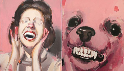 Questa lunga premessa per dare un senso al titolo della prima personale romana di Romina Bassu che indaga artisticamente il male gaze attraverso una serie di opere ad olio di piccolo formato. L’artista, utilizzando una metodologia non nuova nella pratica dell’arte contemporanea, ha estratto una serie di immagini da alcuni archivi anonimi in cui, attraverso la raccolta di ritratti di persone sconosciute, ha attivato i suoi ricordi personali. Questo corposo progetto di raccolta di ritratti anonimi, iniziato anni fa in Spagna, prosegue tuttora ma con una nuova particolare attenzione alla rappresentazione di quegli stereotipi femminili partoriti e santificati da una cultura vetero-maschilista e da una società dei consumi che ancora non riesce a staccare la figura della donna da quella della casalinga/madre/moglie. Il binomio donna-angelo del focolare è sempre esistito ma è stato sancito come modello culturale-estetico dal dopoguerra in avanti dalla pubblicità del boom economico che ha indelebilmente inciso nell’immaginario collettivo la figura della casalinga perfetta, moglie e madre felice, in mezzo ai suoi scintillanti elettrodomestici. La pennellata veloce ma che allo stesso tempo indugia su alcuni particolari anatomici, soprattutto bocche e nasi, enfatizza visivamente quel binomio: violenza dello sguardo e passività del soggetto, che è insita in ogni singola opera di questa serie. Sono ritratti esteticamente attraenti ma che disturbano nonostante l’uso prepotente di un delizioso color rosa bubble-gum e la finta allegria che soffonde i volti di queste donne anonime e stancamente perfette nella loro bionda solitudine.