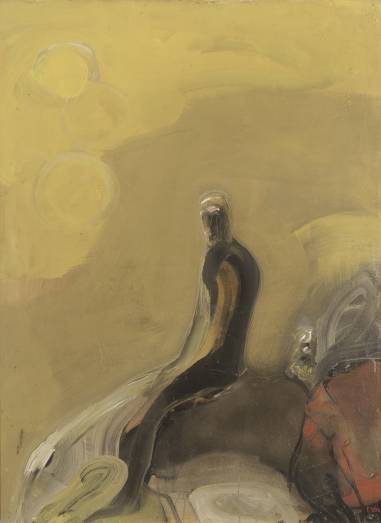 Sergio Selva, Cavaliere su giallo, 1964 ridatato 1971, tempera su tela