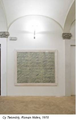 Ad inaugurare le mostre di Palazzo Collicola – Arti Visive, è il lavoro della gallerista Valentina Moncada, che non a caso, qui prende il nome di Cosmogonia, Odissea Contemporanea e rientra nella “sezione Terra” che porta in scena i nomi degli artisti che hanno fatto la storia della sua rinomata galleria romana. Fra questi, diversi inediti di artisti come Anselm Kiefer (Donaueschingen, Germania, 1945) con Star Book, Richard Avedon (New York, 1923 – San Antonio, 2004) con sei fotografie alla modella Theo Graham, Luigi Ontani (Grizzana Morandi, 1943) con una “sfilata” di maschere e in parte mai esposte in Italia. Affianco nomi di artisti emergenti come Carlo Gavazzeni (Milano, 1965) e Francesco Mernini (Roma, 1981). Ma un’opera in particolare suona come ultimo omaggio per l’artista appena scomparso Cy Twombly (Leington, 1928- Roma, 2011). Roman Notes, infatti, è un lavoro del 1970 mai esposto e dedicato alla sua città adottiva, Roma.