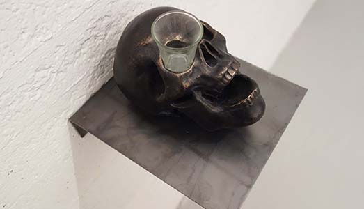 Negli algidi piani ipogei – gli antichi caveau di una pellicceria – invece, cinque opere di Nino Longobardi (Napoli, 1953) raccontano l’Italia, la grande tradizione scultorea del bel paese ma anche l’incertezza esistenziale che da sempre affligge l’uomo. L’artista campano, tra gli invitati da Vincenzo Trione al suo “Codice Italia” (padiglione nazionale della 56° Biennale di Venezia), si concentra sul corpo umano, isola teste, piedi e teschi, mostrando un uomo isolato, alle prese con difficoltà comunicative e instabilità sociale, alla costante ricerca di un proprio baricentro. Il tutto attraverso l’esclusivo impiego di resina e bronzo e una perfezione formale in cui forte appare il peso della tradizione. Un apporto particolarmente evidente nel Cristo a grandezza umana del 2016, in cui la serena rassegnazione del Salvatore è formalmente coniugata all’amputazione degli arti, sostituiti da fili metallici contorti. Una figura serafica e dolente insieme, drammatica nella sua imperturbabile perfezione.