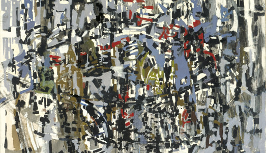 Il percorso della mostra si articola in tre sezioni, testimoniando il graduale allontanamento da un linguaggio in bilico tra gli ultimi spunti neocubisti e un’astrazione già di stampo neoconcreto, per arrivare alle matasse di vortici nervosi e zampillanti della fine degli anni ’50.