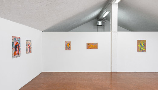 La mostra “Neobiota”, in corso in questi mesi, è una testimonianza dell’ampiezza della ricerca di Yellow: è la prima personale italiana di Sigrid Holmwood, artista britannico-svedese, nata nel 1978 in Tasmania che vive a Londra. Con una ventina di dipinti realizzati appositamente per questa esposizione, Holmwood riflette sulle dinamiche migratorie che nei secoli hanno caratterizzato la storia delle nazioni, unendo tradizioni pittoriche popolari antiche di area svedese, immagini di emigranti italiani a New York a inizio Novecento e processi di botanica. Il titolo della mostra, infatti, è un termine che – ci spiegano gli organizzatori – indica «una specie animale o vegetale, non nativa, spontaneizzata o naturalizzata, immigrata quindi in modo spontaneo o per cause dovute all’uomo, in una regione diversa da quella d’origine, ivi stabilendo popolazioni e autosostenendo la propria riproduzione», di cui possono essere semplici esempi, in Europa, il pomodoro o il granturco, importati dal continente americano secoli addietro e ora facenti parte dell’agricoltura autoctona.