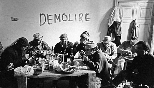 Oltre agli scatti più noti, come i ritratti di Alfred Hitchcock (celeberrimo lo scatto che immortala il regista in un immenso sbadiglio, annoiato dalle domande della stampa italiana, come racconta l’autore), Andy Wahrol, Pier Paolo Pasolini, François Truffaut o Federico Fellini e di altri protagonisti della cultura del XX secolo, insieme alle periferie della Roma “pasoliniana” e dei paesaggi umbri, sono esposte dieci fotografie – di cui alcune inedite – che Becchetti realizza alle Acciaierie di Terni negli anni Settanta. Una collezione riunita in uno spazio a parte, una Project Room, intitolata per l’occasione “La caduta degli dei”: un luogo dove diversi piani di lettura si incrociano generando una riflessione personale e collettiva. Con al centro un tavolo sul quale sono raccolti gli oggetti più significativi della vita del fotografo e alle pareti le dieci fotografie ternane.