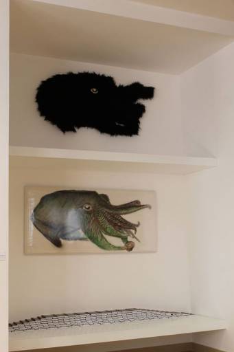 Una tradizione, quella a cui rimanda Ianni, che però non pone limiti alla sperimentazione. Per questo spesso i fondi usati sono materiali diversi: “sensibili”, esaltano sia la densità che la luminosità delle superfici, evidenziando l’aspetto iconografico della sua ricerca. Compare così la pelliccia che diventa leit motiv nelle opere dell’artista, dal suo primo rimettersi in gioco dopo il sisma del 6 aprile 2009 che all’Aquila, sua città di origine, ha distrutto anche il suo studio. Da quella data Stefano Ianni vive a Montesilvano, sul mare. Sarà per questo che, a cinque anni da quell’evento, il suo immaginario è oggi popolato da un mondo marino fatto di creature idealizzate che sono la logica evoluzione del ciclo immediatamente precedente a Fluctus: “Still lives and memories in fur” in cui rappresentava nature morte, costituite da pesci, e ricordi in pelliccia dei notturni della costa adriatica.