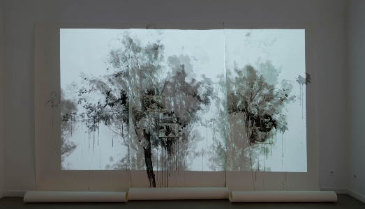 Un site project quello di Bellantoni decisamente mixed media, in cui l’uso “impuro” dei mezzi espressivi permette la creazione di opere “aperte” dove la luce diventa scrittura, il disegno grafia e le immagini multiscatto diventano video. Dunque siamo è in sintesi un progetto di trascrizione, traduzione e quindi di trasformazione.