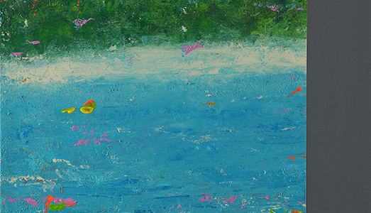 Il suffisso -rama, infatti, rimanda alla vista, in questo caso in rapporto alla morfologia digitale che ormai ci è imposta. Nel tempo che occorre alla visita dell’esposizione, si fanno i conti con la percezione di quelle che vengono ad essere le convenzioni della virtualità, geometrie e colori, tasti e riquadri standardizzati, decontestualizzati dal loro spazio di utilizzo per entrare nello spazio pittorico.