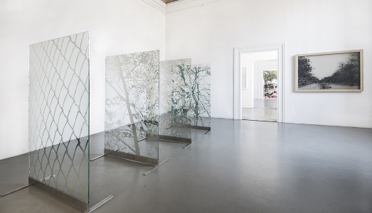 Si costituisce invece sul rapporto con la realtà odierno l’immaginario sviluppato da Luca Pancrazzi, che affida all’opera Vedere il compito di attrarre il visitatore in un percorso effettivo, per cui si rende necessario rivivere il senso del camminamento dello spazio urbano. Composta da quattro specchi in successione, l’opera scardina l’idea di delimitazione tipica del giardino facendoci entrare in una porzione di città privata. Lo stile urbano riecheggia nella fotografia Higgs ocean #5 di Andrea Galvani, ambientata in uno spiazzo di New York, il cui protagonista assoluto è l’automobile. L’energia solare immagazzinata durante la giornata riaffiora nella buia notte, come negativo dell’ombra giornaliera, che riproduce brani inediti delle auto e una visione della città a tratti spettrale.