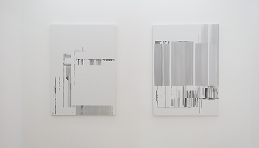 Anche Manuel Fois lavora con il suono, ma il suo è un processo inverso rispetto a Brooks, poiché implica la traduzione in pittura dei diagrammi sonori del cosiddetto glitch: composizioni sonore derivanti da rumori, disturbi sonori dovuti a saldature imprecise o degradate di un cavo jack di connessione all’amplificatore. Elementi di scarto, errori elevati a materiale artistico, vengono riconvertiti da Fois in oli e inchiostri su tela dal rigore minimalista. Per Gemis Luciani invece il sabotaggio dei significati si fa radicale laddove elimina i contenuti di testo di riviste, periodici e rotocalchi per spostare l’attenzione dal contenuto al contenitore: “Nella sua serie Marginal composition parte proprio dalla presentazione di una semplice rivista sulla quale è intervenuto con tecnica meticolosa, piegando, tagliando e incollando le pagine tra loro in modo che la parola venga bandita e ne risulti un affascinante e suggestivo gioco di colori e forme” (G.S.).