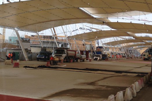 Ai lati i padiglioni, finiti (pochissimi) e in corso d’opera (quasi tutti), mentre alcuni sono davvero agli albori. Viene da dire che completare in 35 giorni sia impresa impossibile, nonostante tutto l’ottimismo del mondo e il solito refrain italiota del “Ce la faremo come sempre”.