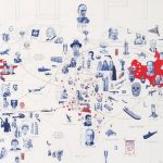 L’elemento che da sempre accoglie lo spettatore nelle mostre di Stampone è il duplice binario di lettura, che è anche la cosa che probabilmente lo rende un artista a tutto tondo, capace di relazionarsi con il pubblico. I suoi lavori infatti si muovono essenzialmente su due livelli, uno di origine più estetica, l’altro con una profonda e seria riflessione di tipo politico. Che sia chiaro però da subito il concetto di politica di cui si vuole parlare, non il becero mondo di politici di cui sentiamo sempre alla tv, ma la politica in senso assoluto, l’idea secondo la quale l’arte deve rivendicare, nuovamente, una coscienza sociale, una identità tra chi la racconta e chi la legge.