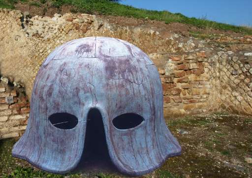Miti e leggende, insieme a vicende realmente vissute e documentate aleggiano intorno al sito: tra ciuffi d’erba, rami di ulivo e pietre consumate ecco spuntare i nomi dei vari Strabone, Ulisse, Caio Gracco, Annibale, Nerva, Cassiodoro. E adesso torniamo al presente, che non è meno entusiasmante del passato. Dal 18 giugno la scena sarà movimentata dalla presenza di quarantacinque lavori di noti artisti contemporanei: Tony Cragg (Liverpool 1949), Jan Fabre (Anversa 1958) e Mimmo Paladino (Paduli, Benevento 1948). “I tre artisti, pur con linguaggi e approcci diversi, condividono medesime problematiche.” – spiega Alberto Fiz – “Cragg, Fabre e Paladino, infatti, emanano, attraverso le loro opere, una forte energia vitalistica in un confronto con la dimensione temporale e spaziale. Questo consente di realizzare un’operazione duplice dove la ricerca contemporanea s’innesta sul territorio creando nuovi percorsi visivi e nuove suggestioni.” Misteriose ed enigmatiche, le opere di Cragg sono ospitate nel foro: partendo da riferimenti e reminiscenze dell’antichità (armature o colonne), l’artista inglese trasforma la materia, con la complicità degli elementi geometrici, in forme inaspettate, apparentemente incongruenti. Imperniato sul concetto di fusione di energia fisica e mentale, è il lavoro di Fabre (motori, teschi, installazioni di croci di legno, gufi di vetro, scarabei), che trova la sua collocazione fra le rovine della basilica, in cima alla quale è posta la scultura in silicone e bronzo, L’uomo che misura le nuvole (1988), simbolo dell’umano tentativo di misurare capacità e limiti dell’individuo, ma anche di affrontare un’impresa impossibile. Il teatro, infine, è popolato di personaggi di terracotta e bronzo di Mimmo Paladino. Sul filo del tempo e della memoria l’artista campano fa parlare i suoi attori e spettatori. Sulla sommità dei gradoni, ecco spuntare un elmo di ferro, “dove il contenitore diventa contenuto” –scrive il curatore– “evocando una maschera teatrale di forte suggestione, ma non priva d’inquietudine.”