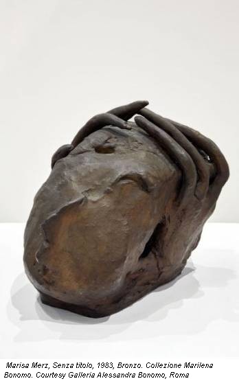 Completa l’opera la meravigliosa serie di fotografie di Claudio Abate, che raccontano un pezzo di storia, dalla storica performance in volo dall’aeroporto dell’Urbe che Marisa realizzò in collaborazione con Fabio Sargentini nel febbraio del 1970 – l’entusiasmo nel volto, la volta del cielo di Roma descritto da un tracciato che trasforma l’energia cinetica in segno artistico; o le installazioni alla Galleria L’Attico del 1975, fino alla serie realizzata presso il Villaggio dei Pescatori di Fregene, dove le scarpine di Marisa si posano sul bagnasciuga confondendosi con la spuma del mare. Immagini che restituiscono alla Merz una forza nel saper essere una donna, nel mondo dell’arte contemporanea, al fianco di un grande artista, nel suo gesto profondamente legato alla manualità del fare, dalla tessitura alla scultura, fino ai grandi angeli maestosi nei loro colori forti, seppur accompagnati dalla fragilità del supporto cartaceo. Immagini che restituiscono una coppia prima ancora che due identità artistiche, dove il tempo della creazione e produzione dell’opera e quello della vita si intrecciano, senza soluzione di continuità.