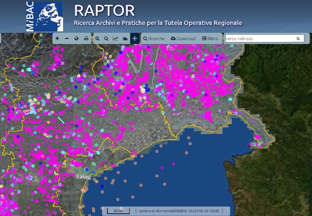 Dopo un lavoro di archiviazione digitale durato circa sette anni e ancora in corso, si è avviato da pochi giorni RAPTOR-Ricerca Archivi e Pratiche per la Tutela Operativa Regionale, programma concepito dal MIBAC nel 2013, con il supporto delle ex Soprintendenze per i Beni Archeologici. Questo progetto, a cui oggi partecipano la Soprintendenza Archeologia, Belle Arti e Paesaggio per l’area metropolitana di Venezia e le province di Belluno, Padova e Treviso, è nato con l’intento di ottimizzare il lavoro dei funzionari archeologi e, indirettamente, anche quello delle Amministrazioni Pubbliche, velocizzando e moltiplicando l’accesso alle informazioni e snellendo le pratiche burocratiche.