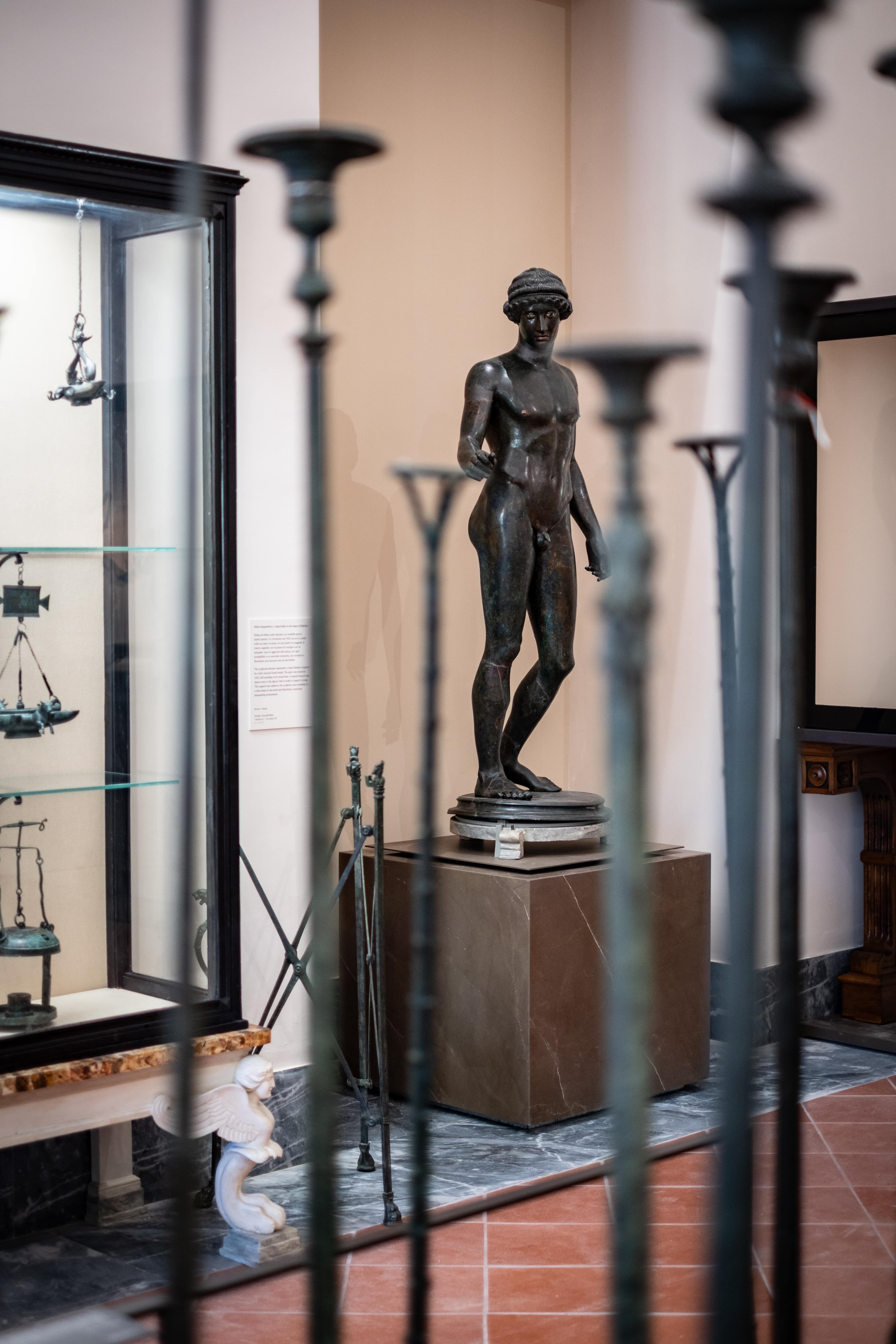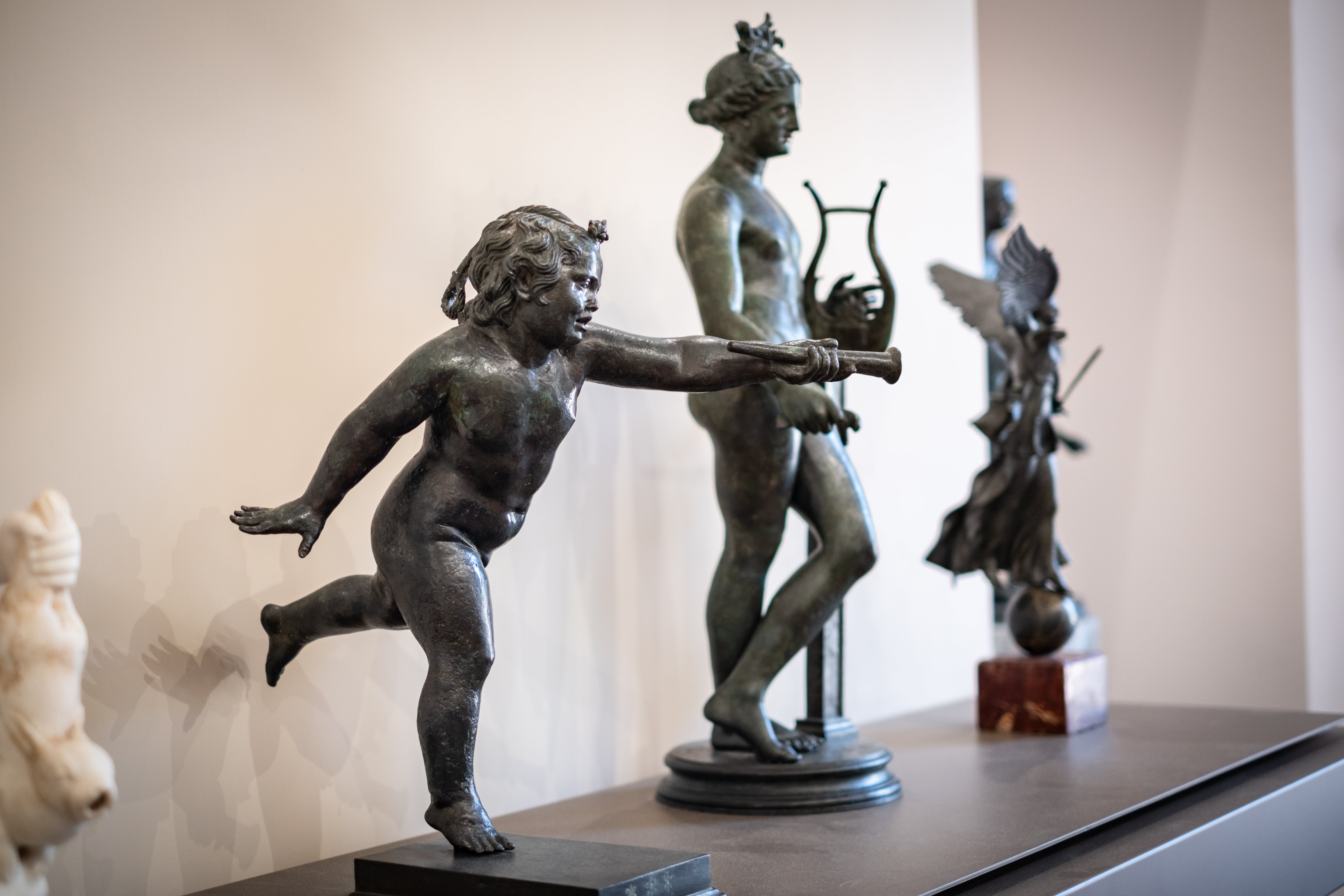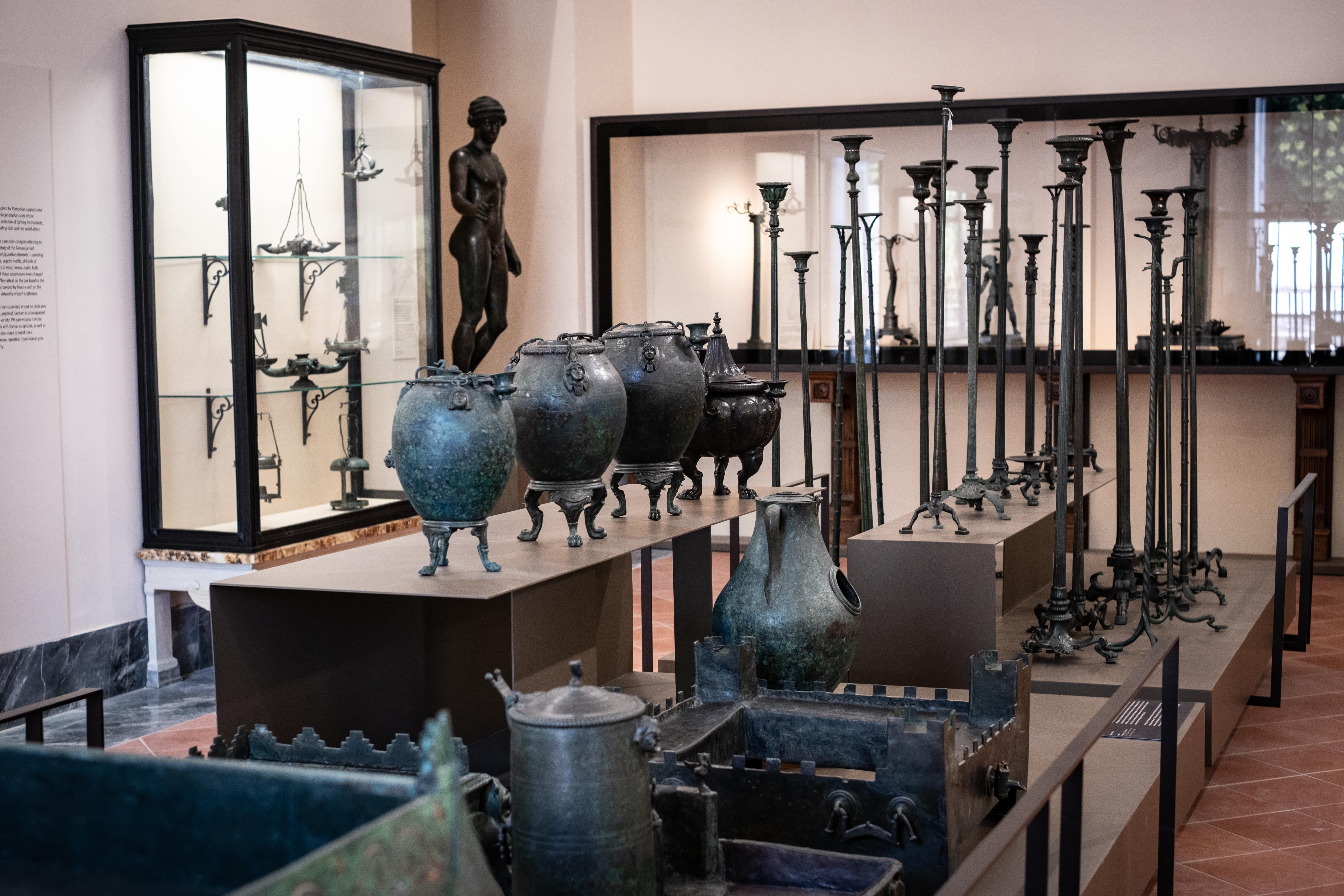 L’allestimento, ospitato al secondo piano del museo, è scandito da bronzi, marmi, terrecotte e affreschi, restituendo la preziosità degli arredi e il loro significato. Ogni oggetto diventa parte di un racconto che svela aspirazioni sociali e riti intimi che caratterizzavano l’universo simbolico di una civiltà che vedeva nella casa un luogo fondamentale di rappresentazione.