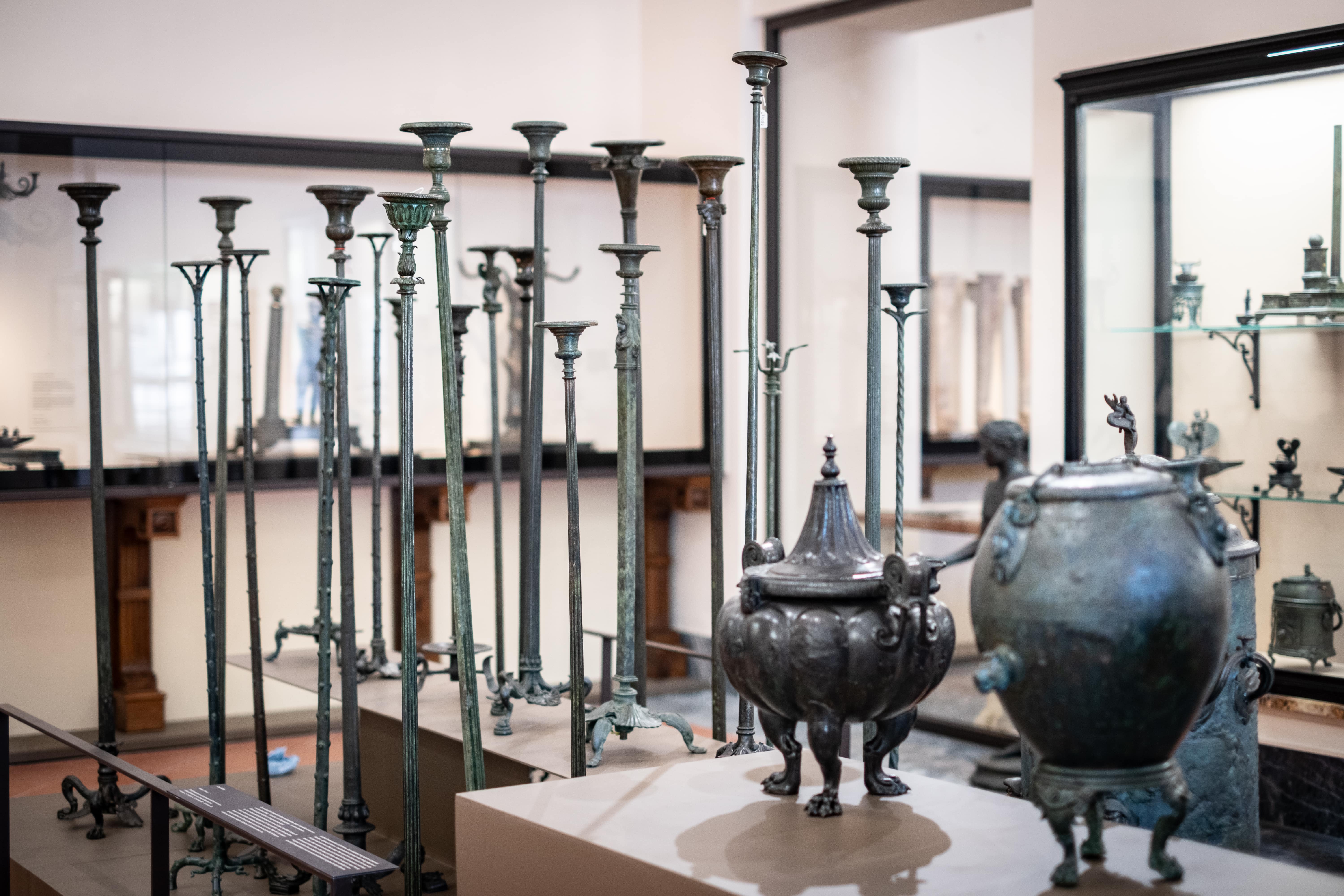 Il percorso espositivo presenta una vasta tipologia di oggetti che raccontano le funzioni dell’abitare: dai mobili, come sedute, sgabelli, panche, tavolini pieghevoli e monopodi decorati, agli oggetti d’uso quotidiano, tra bracieri, lucerne, candelabri e scaldavivande, fino a sofisticati apparati decorativi come sculture, ornamenti da fontana e affreschi.