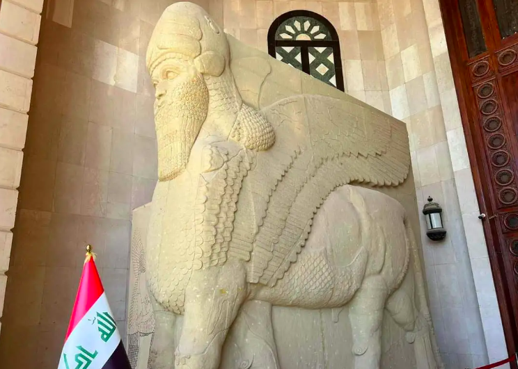 L’Italia ha recentemente donato all’Iraq una replica del celebre Toro di Nimrud, un’opera d’arte assira risalente al IX secolo a.C. Il Toro originale, una maestosa scultura che adornava la facciata della grande sala del trono del palazzo reale di Ashurnasirpal II, era situato nell’antica città di Nimrud, vicino all’attuale Mosul. Questa imponente statua, alta 5 metri, raffigurava un toro alato con testa umana barbuta, uno dei numerosi “lamassu” che decoravano il palazzo assiro. Insieme ad altri preziosi manufatti, l’originale Toro di Nimrud è stato distrutto dai miliziani dell’ISIS durante gli attacchi del 2015 al sito archeologico.