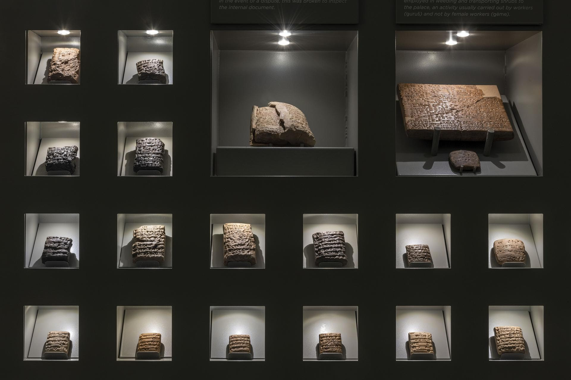 Tra gli oggetti iconici selezionati dai curatori sono presentati il ritratto scultoreo di Cesare, ritenuto dagli esperti uno dei più rassomiglianti al condottiero; il rilievo assiro del re Sargon II, una delle più raffinate rappresentazioni del sovrano neo assiro risalente al 717-707 a.C.; il grande sarcofago etrusco datato al 280-270 a.C. della Matausna, donna appartenente alla famiglia omonima di cui si possono ricostruire parentele e nomi; il mosaico del cantore Orfeo che ammansisce le belve, ritrovato a Cagliari e giunto al Museo di Antichità già nel Settecento; il misterioso busto di Iside “cabalistica”, scolpito nella seconda metà del XVI secolo; un’eccezionale iscrizione in bronzo trilingue (punico, greco, latino) proveniente dalla Sardegna romana.