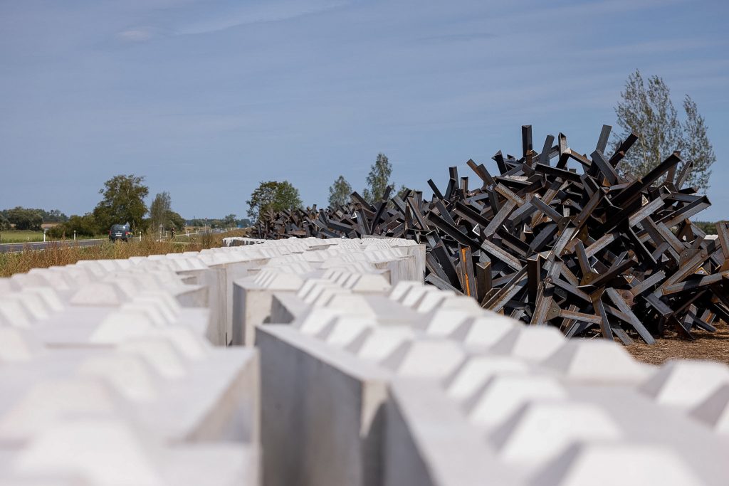 Curato da Liene Jākobsone e Ilka Ruby e progettato dagli studi Sampling e Nomad architects, il Padiglione Lettonia con il titolo Paesaggio di difesa offre uno sguardo sulla ricerca architettonica in un territorio di confine, una ricerca che deve coordinarsi con esigenze di difesa militare, tensioni geopolitiche e resilienza sociale. «La Difesa nazionale è un processo continuo, da riconoscere e accettare», spiega Jakobsone, il cui approccio curatoriale intende esplorare il paesaggio spaziale e sociale lungo il confine orientale del Paese, in uno stato di tensione geopolitica che plasma la vita di una collettività. Nel Padiglione Lettonia, paesaggio civile e paesaggio militare si mescolano e sovrappongono sviluppando un racconto che si articola attorno alla costante minaccia di attacco e l’inaspettata poeticità di misure difensive quali i ricci di filo spinato o i denti di drago in cemento.
