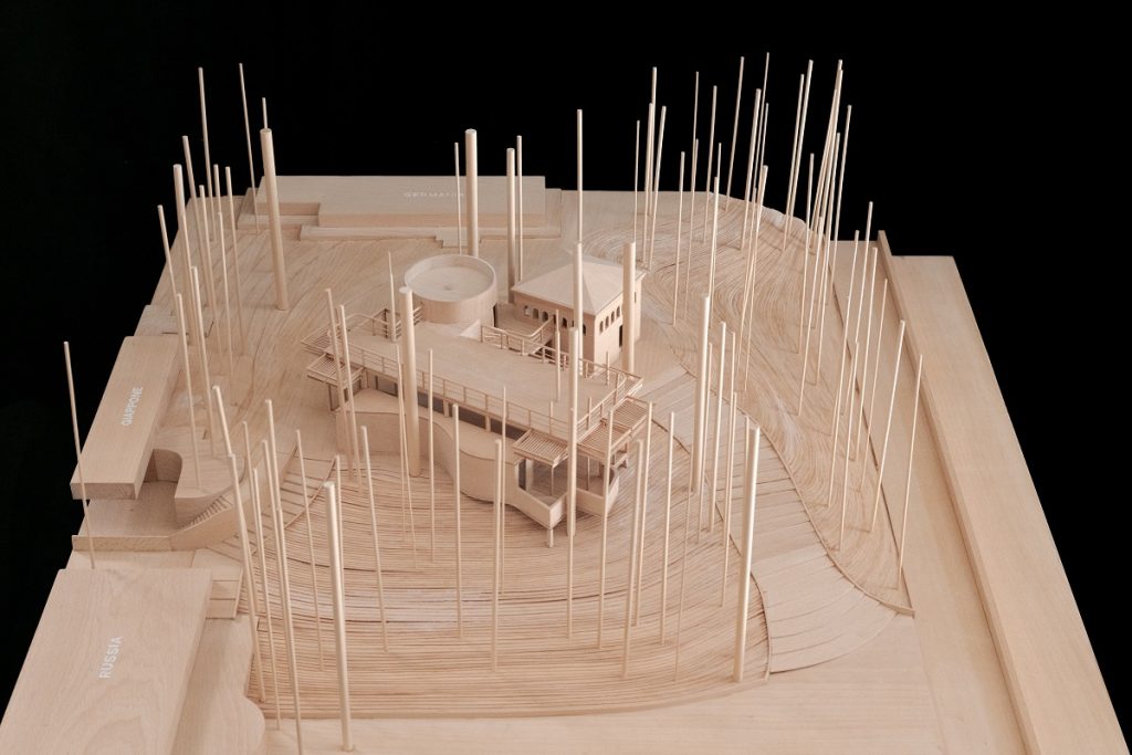 La vita durante la guerra non si ferma né tantomeno si arresta il fermento culturale di un paese. Le idee non smettono di germinare, irrorando un terreno arido come è quello di uno stato nel pieno di un conflitto. Il padiglione Ucraina dimostra l’incessante attività creativa di architetti che, nel solco di una riflessione profonda sul significato dell’abitare in tempi di crisi estrema, cercano instancabilmente soluzioni per fronteggiarla. Essi coniugano sapienza architettonica con l’ingegnosità della ricostruzione emergenziale nata dal conflitto in corso. A cura di Bogdana Kosmina, Michał Murawski e Kateryna Rusetska, la mostra porta in scena una riflessione che prende le mosse dal concetto di “tetto” (dakh in ucraino) quale archetipo del riparo, precario ma imprescindibile, che separa vita domestica dall’esterno, in questo caso, da un cielo attraversato da pericoli e minacce. Una narrazione che procede per immagini che parla di un paese in guerra ma anche del processo di riparazione già in atto mentre la devastazione e il pericolo continuano a persistere. Lungi dall’essere mero esercizio espositivo, il progetto si configura come un appello internazionale alla giustizia ricostruttiva, alla difesa dell’abitare e un promemoria sulla persistenza, nonostante la devastazione, del patrimonio culturale ucraino.