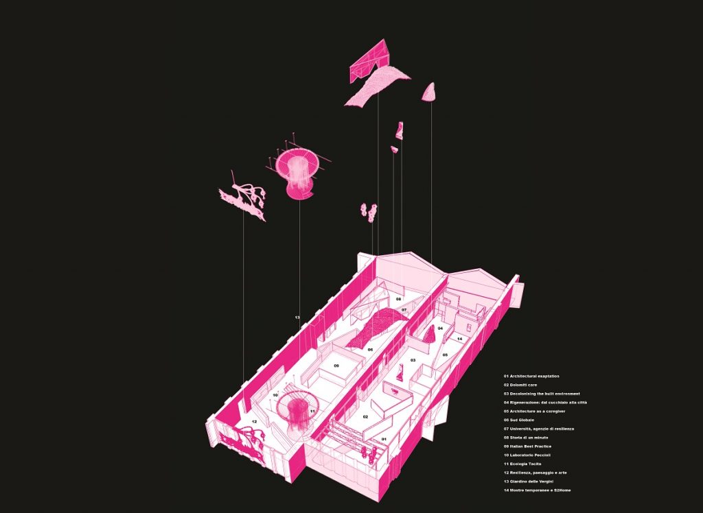 «Il Padiglione Italia sarà esso stesso una comunità resiliente, costituita da 14 “sotto comunità”, intese come laboratori operativi, centri di ricerca o casi studio, secondo due fondamentali direttrici: una riflessione sullo stato dell’arte in tema di resilienza urbana in Italia e nel mondo attraverso l’esposizione delle opere di eminenti architetti italiani e un focus su metodologie, innovazione, ricerca con sperimentazioni interdisciplinari a cavallo tra architettura, botanica, agronomia, biologia, arte e medicina», ha spiegato il curatore Alessandro Melis.