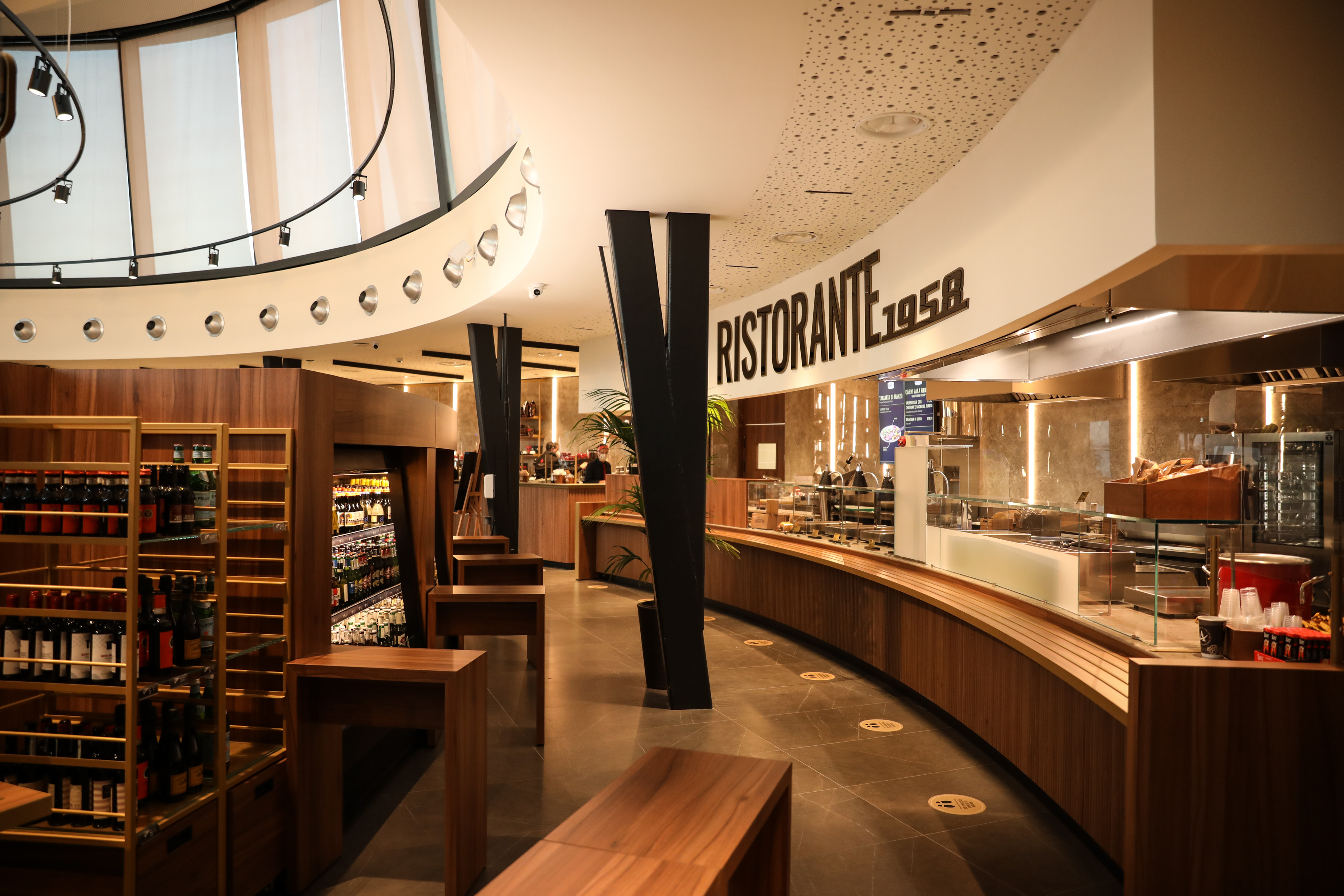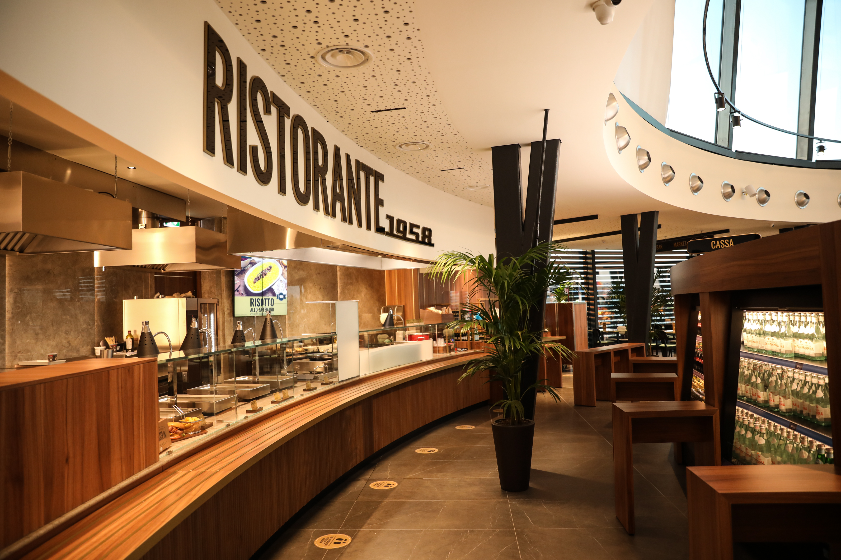 Sul nuovo progetto del Villoresi Ovest, curato dallo studio di architettura Andrea Langhi Design, la società Autogrill ha mantenuto il massimo riserbo e, adesso, l’annuncio della riapertura, diffuso tramite alcune immagini – per la verità non molte – postate sui social network. Il nuovo punto di ristoro, al quale Life dedicò una storica copertina nel 1960, ha riaperto conservando, in gran parte, immutata la sua struttura visibile, con l’innesto, però, di materiali ad alta efficienza energetica, come i vetri a doppia camera con pellicole filtranti per i raggi UV e le piastrelle di Active Ceramic, dalle proprietà battericide e antivirus, per la pavimentazione e i rivestimenti.