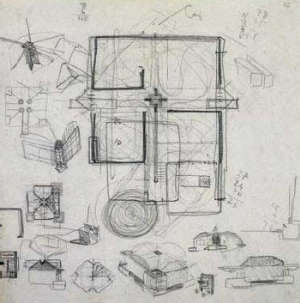 Suggeriscono un percorso mentale, durante la fruizione della mostra, che è sottilmente labirintico e mai lineare. Suggestione quest’ultima che viene per così dire amplificata non solo dall’organizzazione spaziale dell’allestimento, ma soprattutto dagli sbalzi di scala, dalle rappresentazioni di suggestioni architettoniche e di elementi minuti, contenuti nei disegni stessi.