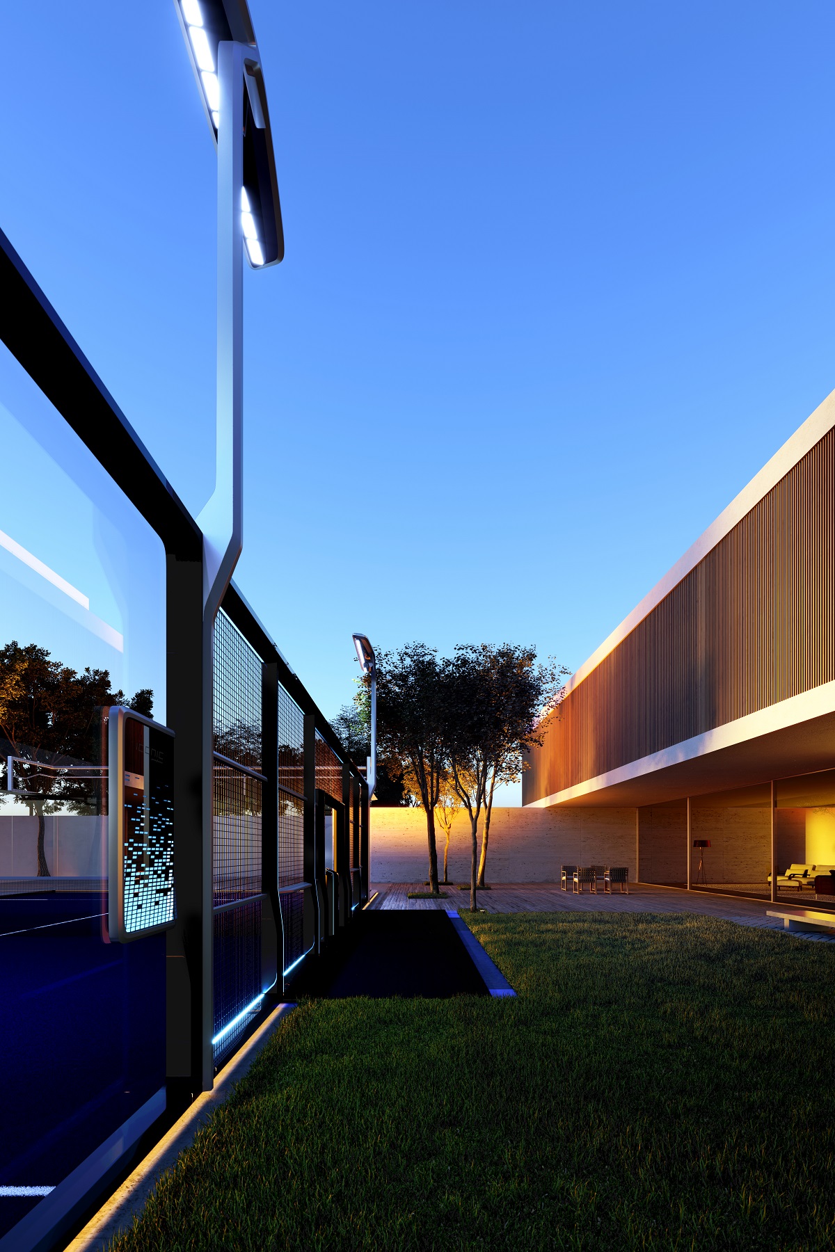 Flessibile e modulabile, il campo è dotato di innovativi sistemi tecnologici. I paletti tendirete, ad esempio, sono pensati come veri e propri hub di accesso al campo: attraverso i due display touch o l’assistente vocale integrati è possibile, infatti, la gestione di parametri quali l’illuminazione del campo o lo sbrinamento di vetri, adattando i consumi energetici e garantendo allo stesso tempo la migliore esperienza di gioco possibile. Ciascun paletto include inoltre un sistema di messa in tensione automatica della rete di gioco, per un’esperienza sempre ai massimi livelli, e un modulo di pressurizzazione delle palline, per aumentarne considerevolmente la vita utile.