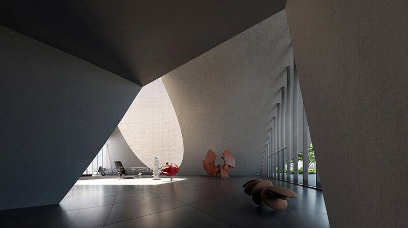L’interno sarà organizzato intorno a un grande oculus centrale, che lascerà filtrare la luce naturale creando un’atmosfera rarefatta e contemplativa, cifra distintiva del linguaggio di Ando. I primi due livelli ospiteranno mostre di arte moderna e contemporanea, mentre i piani superiori accoglieranno un ristorante panoramico e un’area lounge affacciata sullo skyline di Dubai. Una biblioteca, spazi di studio e sale per programmi educativi completeranno la struttura, concepita come piattaforma per scambi artistici e culturali.