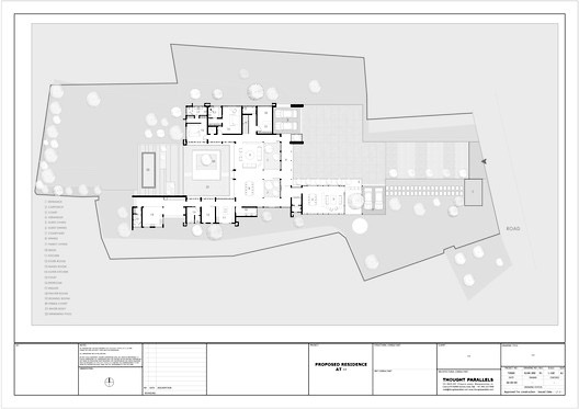 Le feritoie verticali sono state miratamente progettate in modo tale da eliminare la necessità di luce nelle verande esterne, fornendo una prospettiva onirica diffusa. Il corridoio conduce al soggiorno principale, familiare e informale, situato lontano dal blocco principale, dotato di una struttura essenziale a doppia altezza con soffitto in legno. Lo spazio è stato immaginato come angolo privato del proprietario di casa, luogo di incontro e ritrovo con sé e con gli altri.