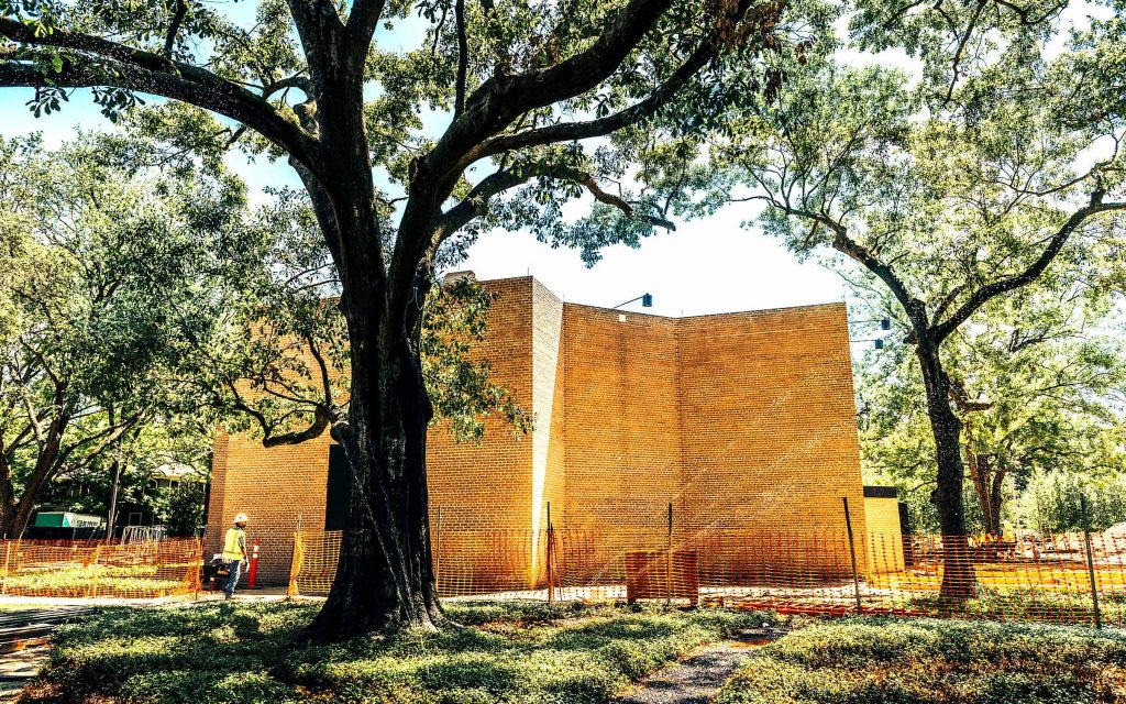 Nel frattempo, gli architetti paesaggisti dello studio Nelson Byrd Woltz hanno lavorato con ARO per sviluppare il parco intorno alla cappella, aggiungendo boschetti e aree per sedersi e rilassarsi. Yarinsky ha infine sottolineato le dinamiche architettoniche tra la cappella e la scultura Obelisco rotto di Barnett Newman, dedicata a Martin Luther King Jr. Un rapporto visivo e formale che incarna finalmente la visione di Rothko per la cappella, tra contemplazione e azione, arte ed etica.