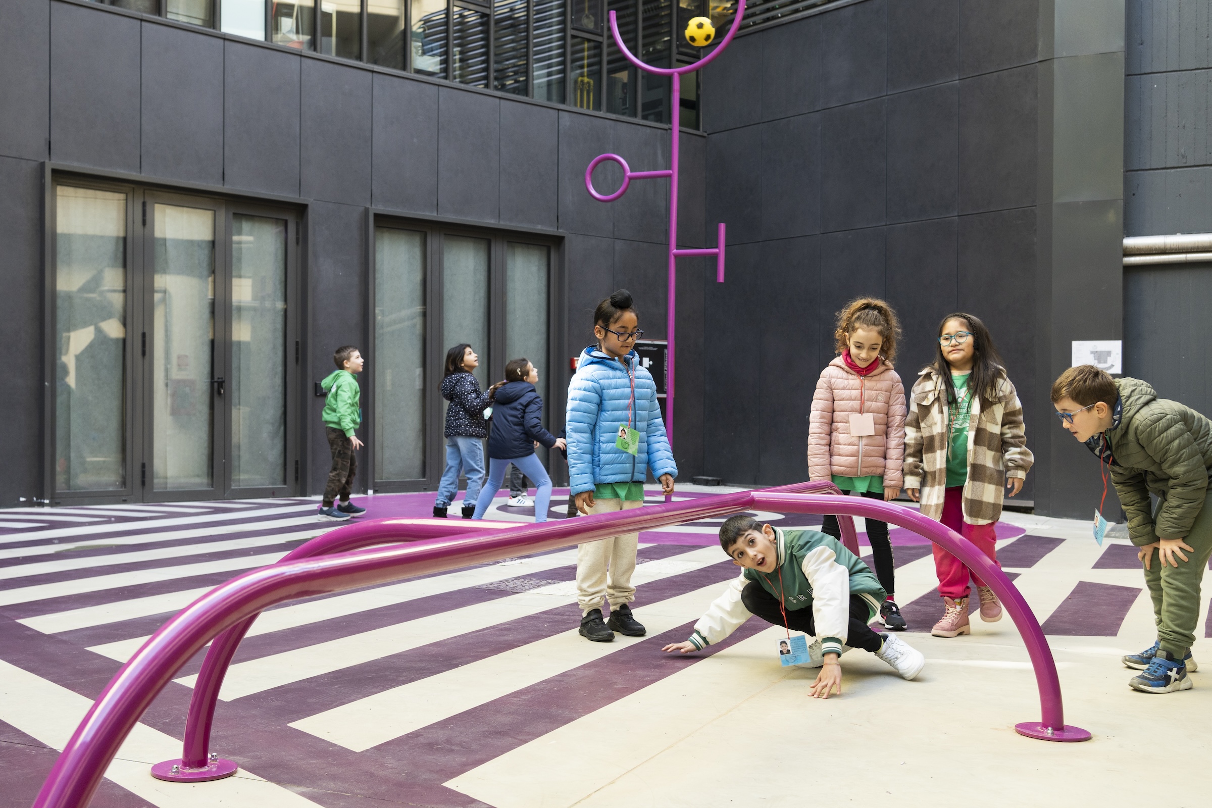 «L’astrazione del disegno consente ai bambini di sviluppare liberamente la loro creatività incentivando l’interazione», spiegano dal team che ha realizzato il playground. «Né gli elementi tridimensionali né il disegno a terra assomigliano a giochi specifici (come uno scivolo o un’altalena), ma sono sculture abitabili. L’idea è di avvicinare i giovani fruitori al museo e all’arte attraverso la possibilità di espressione e interpretazione personale, sviluppando così un rapporto più diretto con il luogo e con le tematiche artistiche. Gli oggetti ludici che compongono l’Anima(le) del museo richiamano l’idea di un parco con sculture. Questa azione aumenta l’estensione dello spazio del museo verso l’esterno, incentivando la sua dimensione pubblica e partecipativa».
