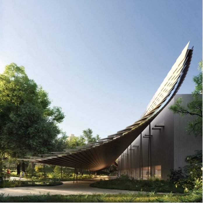 e in risposta all’impegno del CAM di stabilire una maggiore connessione tra l’edificio, il giardino e la città. Accessibili attraverso un nuovo ingresso, i giardini sono stati estesi per creare una foresta urbana ideata dal paesaggista Vladimir Djurovic. Una grande tettoia rivestita in piastrelle bianche dalle linee morbide e organiche segnerà la facciata del nuovo edificio e trasformerà il suo ingresso principale in un’area di passaggio tra il CAM e il giardino, pensata per la socializzazione dei visitatori.