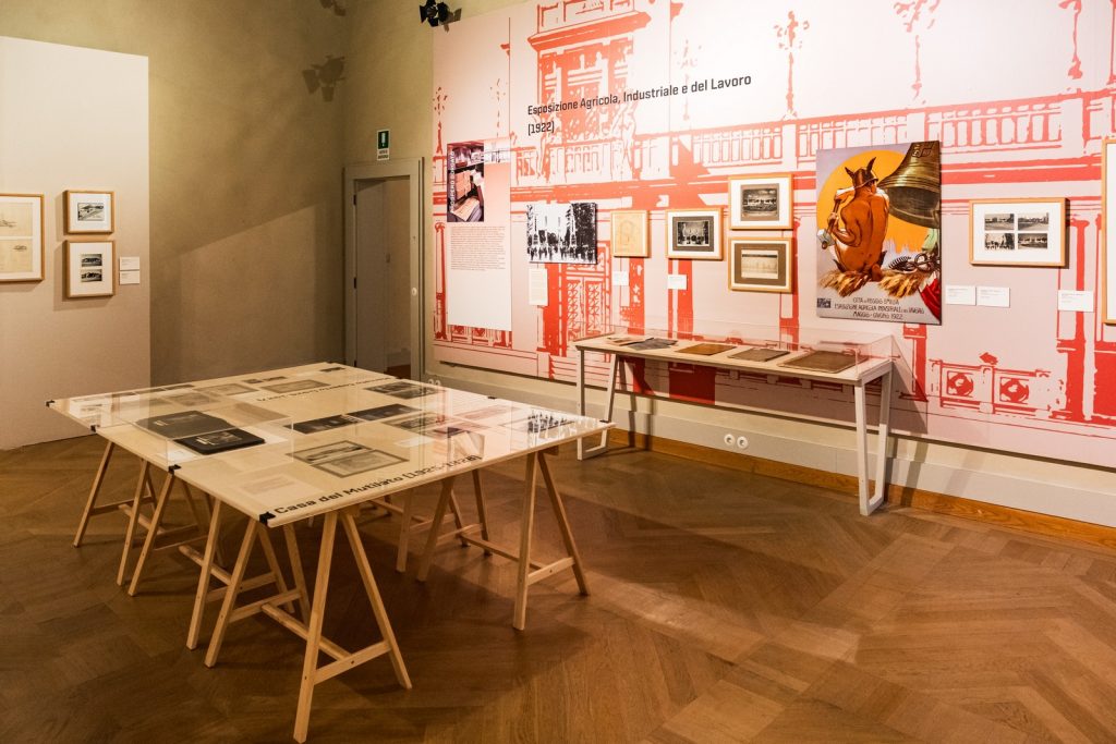 In una successione cronologica tra le sale al primo piano del palazzo, l’esposizione traccia una mappatura della genesi e delle sorti dei più emblematici edifici del secolo scorso, presentati attraverso un’accurata selezione di tavole progettuali, modelli di studio, fotografie d’epoca e schizzi: dall’Hotel Posta e il Teatro Ariosto del tardo liberty di Guido Tirelli, i progetti del Mercato Coperto e del Cimitero Monumentale di Prospero Sorgato, promotore dell’EXPO di Reggio Emilia del 1922, sino ai progetti della storica Cooperativa Architetti e Ingegneri, con il celebre progetto Coop1, primo supermercato moderno, e il cosiddetto Grattacielo della città, di cui i curatori hanno messo in luce, grazie alla ricerca sviluppata nei fondi d’archivio dedicati, il progetto di un grattacielo gemello, mai costruito. Il concept espositivo manifesta fisicamente la visione del progetto come strumento attivo e sempre parlante: tavoli di lavoro su cavalletti aprono allo sguardo le storie delle diverse architetture presentate, la cui narrazione viene corredata in più sale da approfondimenti video.
